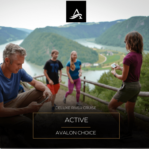 Stay active while cruising. Avalon's Active & Discovery" is an exciting type of cruise that introduces you to the people and places of Europe in the most engaging and fun ways imaginable. From cycling for a scenic ride through town to grabbing Nordic walking sticks and hiking to a hillside vineyard or castle.