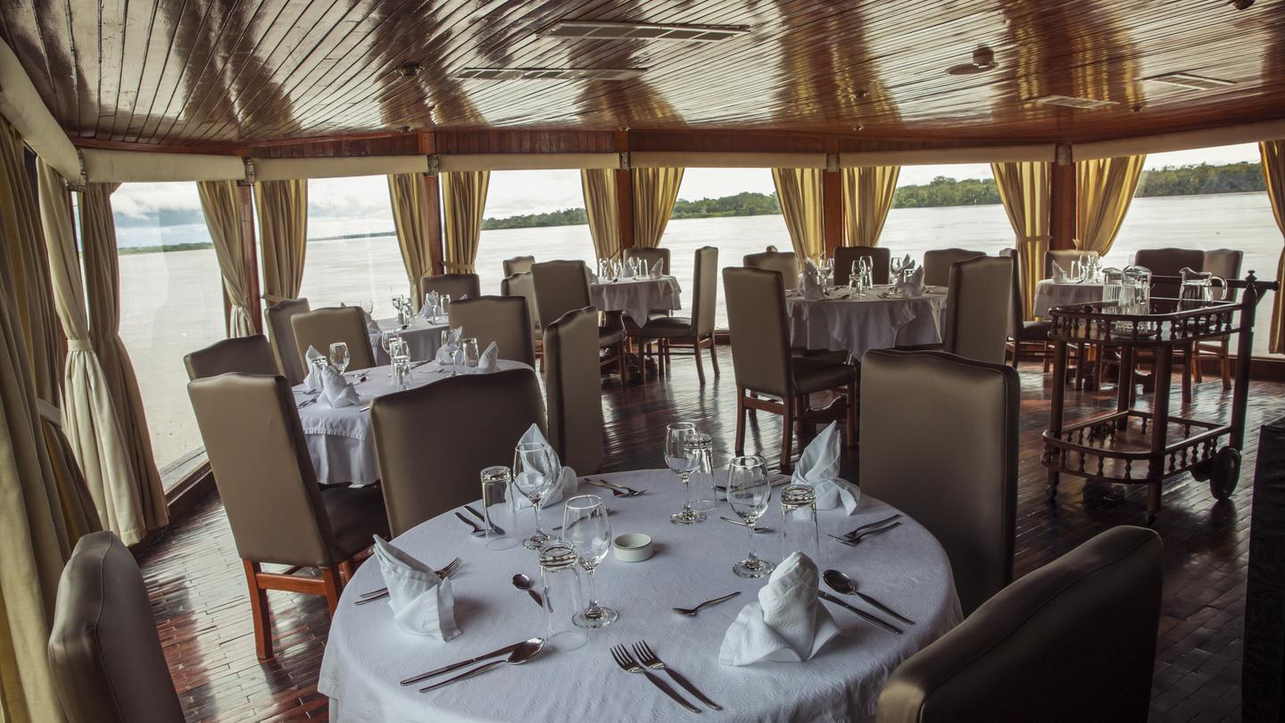 - 6 nights cruise aboard the Amatista Amazon Riverboat