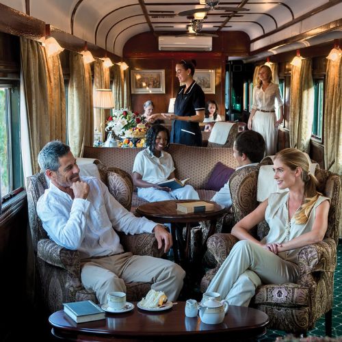 This journey takes the train from the savannahs of the Highveld to the Atlantic in the west. Departing from Pretoria, the first stop is Kimberley, centre of one of the world’s famous diamond rushes where there is an opportunity to savour the 1870s atmosphere of the mining village. The train traverses the stark vistas of the Northern Cape to the Fish River Canyon – second in size to the Grand Canyon – and Garas Park with its quiver-tree forest. The running times have been tweaked with the addition of a visit to Kolmanskop and Lüdertiz, known for its museum, architecture and coastal wildlife Guests continue across the untamed beauty of the Kalahari Desert to a cheetah conservation project and a stop in Namibia’s capital for a tour; Windhoek is a lively, cosmopolitan city with a strong German flavour. Then it’s a short flight to Sossusvlei, a stunning pan in the Namib Desert, for an overnight stay followed by a night in the game-rich Etosha National Park. On the last morning, the train travels the Namib to the perfectly preserved 19th-century German Hansa town of Swakopmund and Walvis Bay – an unforgettable end to a remarkable journey.